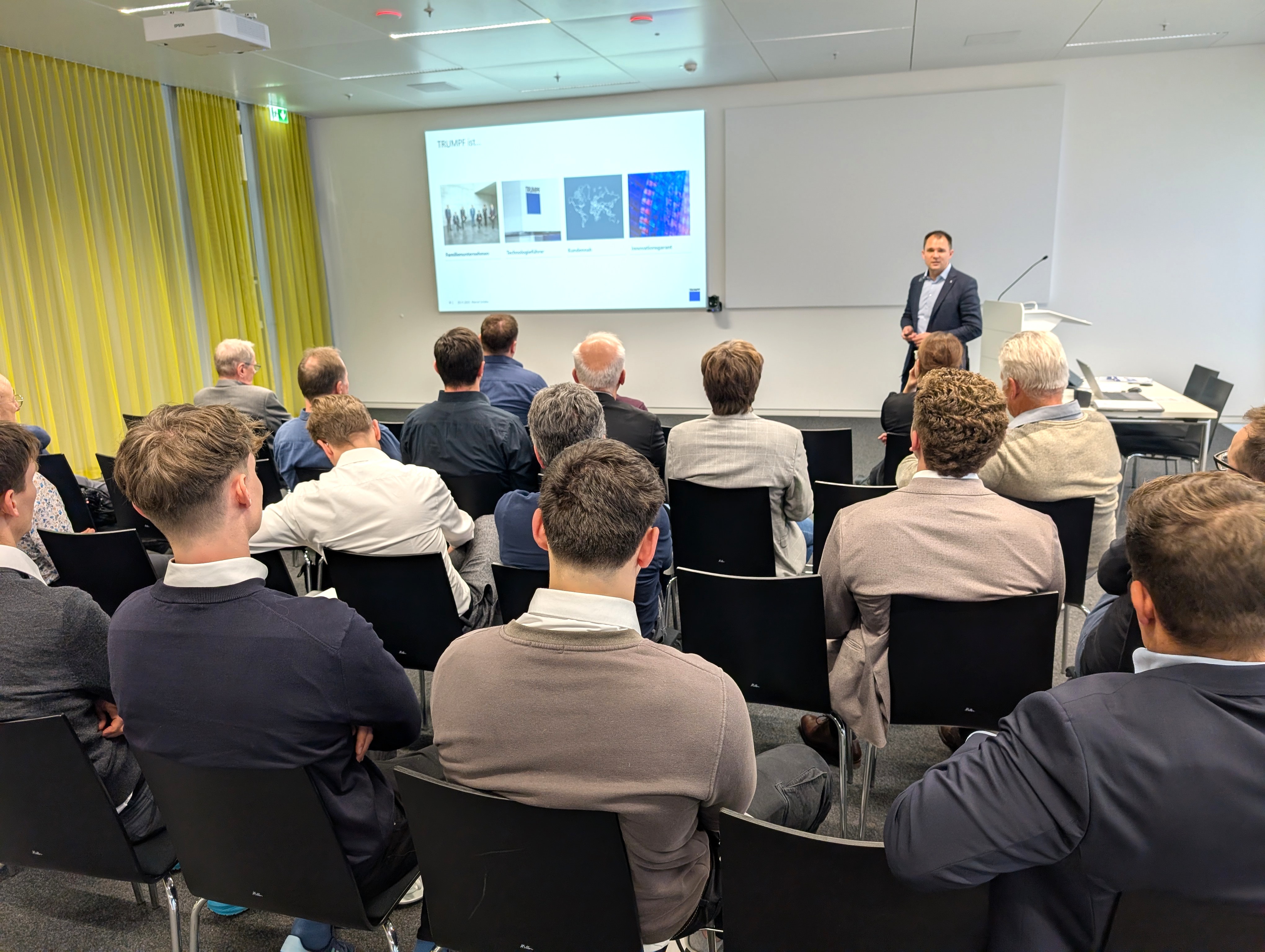 Nach der Begrüßung und einer kurzen Vorstellungsrunde präsentierte Dr. Marcel Schäfer das Unternehmen und den Standort Schramberg. Anschließend erhielten die rund 30 Teilnehmenden bei einer spannenden Führung Einblicke in die Fertigungs- und Entwicklungsbereiche der TruMicro Laser und TruFiber Laser.